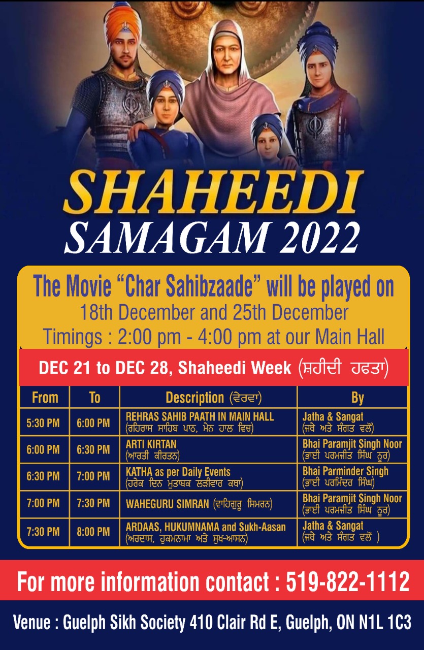 From December 18th to December 28th we will pay tribute to all our Shaheeds. These are events that changed the history of India and tested the strength, bravery and the will of the Khalsa Panth! Parnaam Shaheeda Nu ! Waheguru Ji.